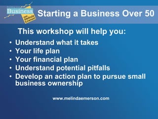 The first tip for you starting over at 50 is to understand that age is just a number. 36 or12 months living costs in cash in an easy access account. If you have been cautious with your finances you should be in a comfortable position to choose your future activities.